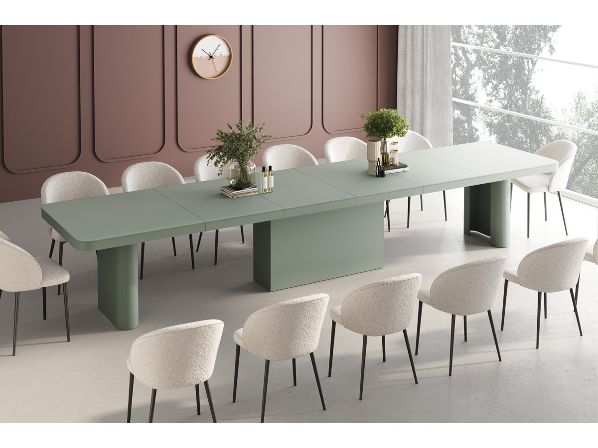 Vďaka svojej pôsobivej veľkosti je stôl Portofino ideálny do veľkých jedální a konferenčných priestorov. Jeho pevná konštrukcia zaručuje stabilitu pri plnom rozložení a odolnosť po mnoho rokov. Zaoblené hrany odrážajú súčasné trendy v interiérovom dizajne a zároveň zaisťujú bezpečnosť a pohodlie, či už ide o rodinnú večeru alebo dôležité obchodné stretnutie.