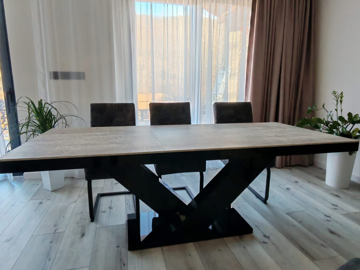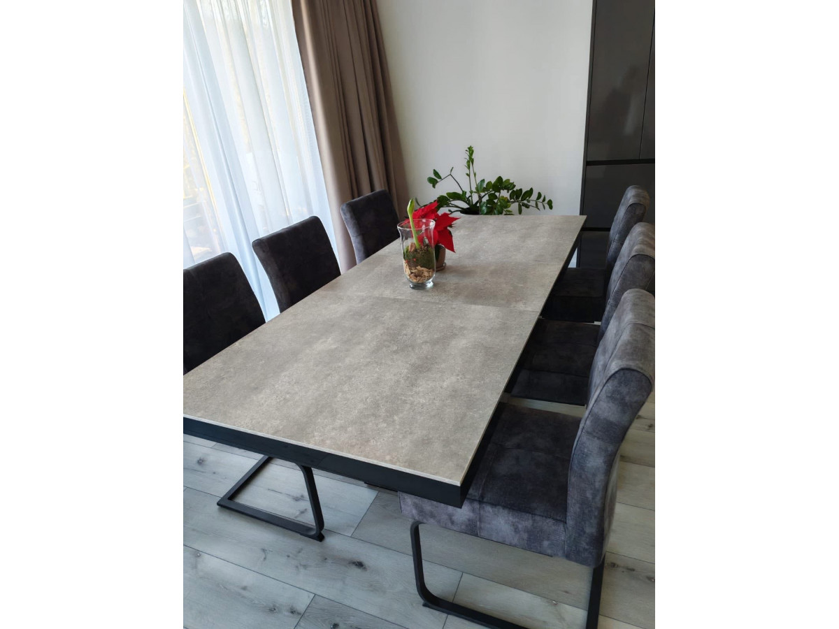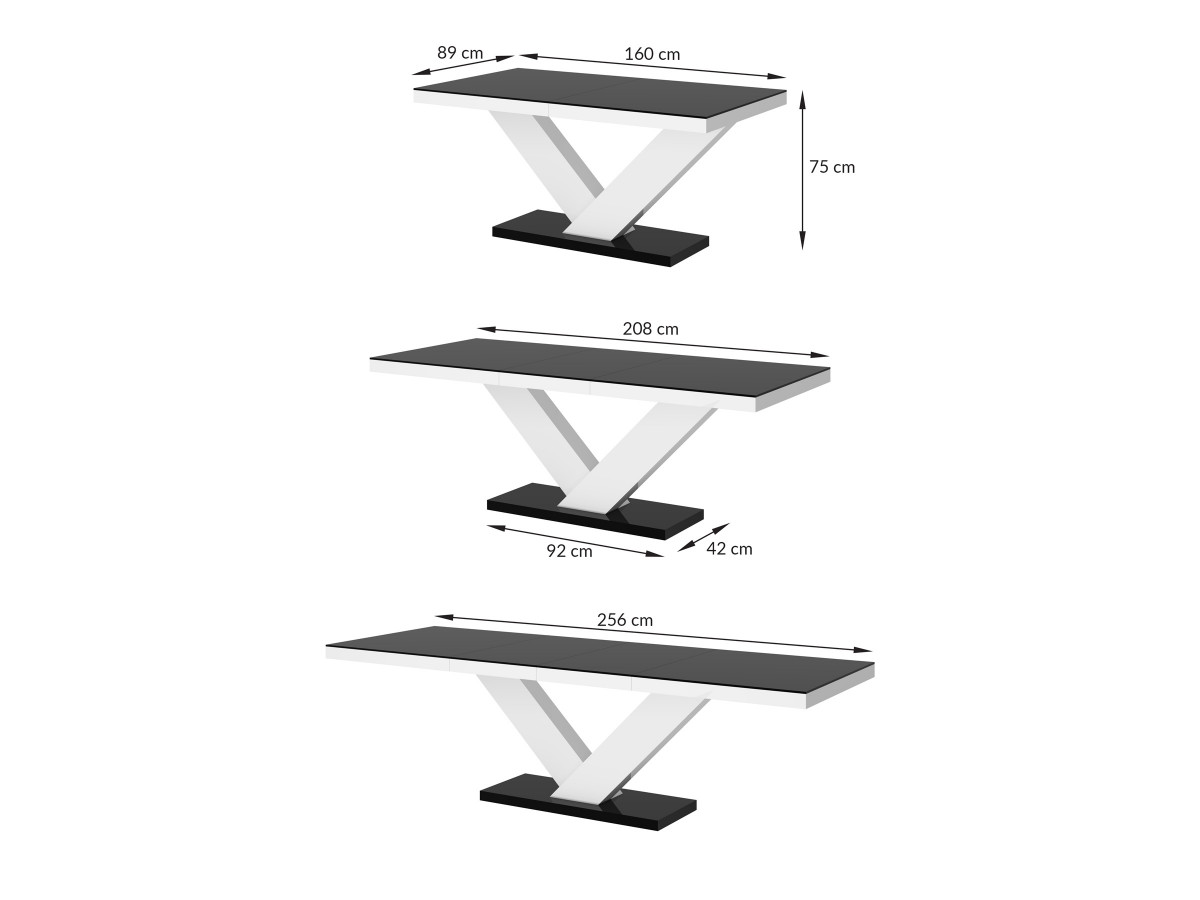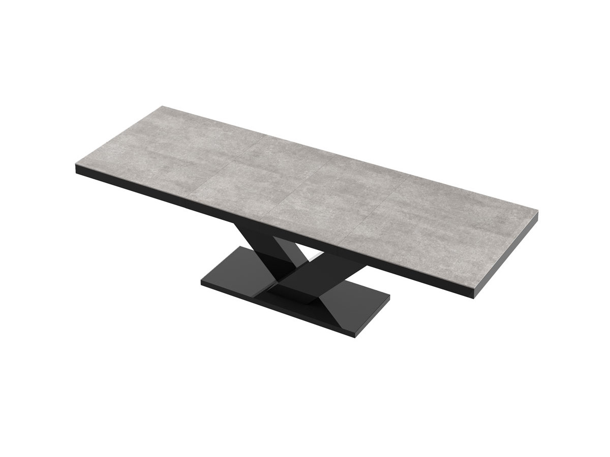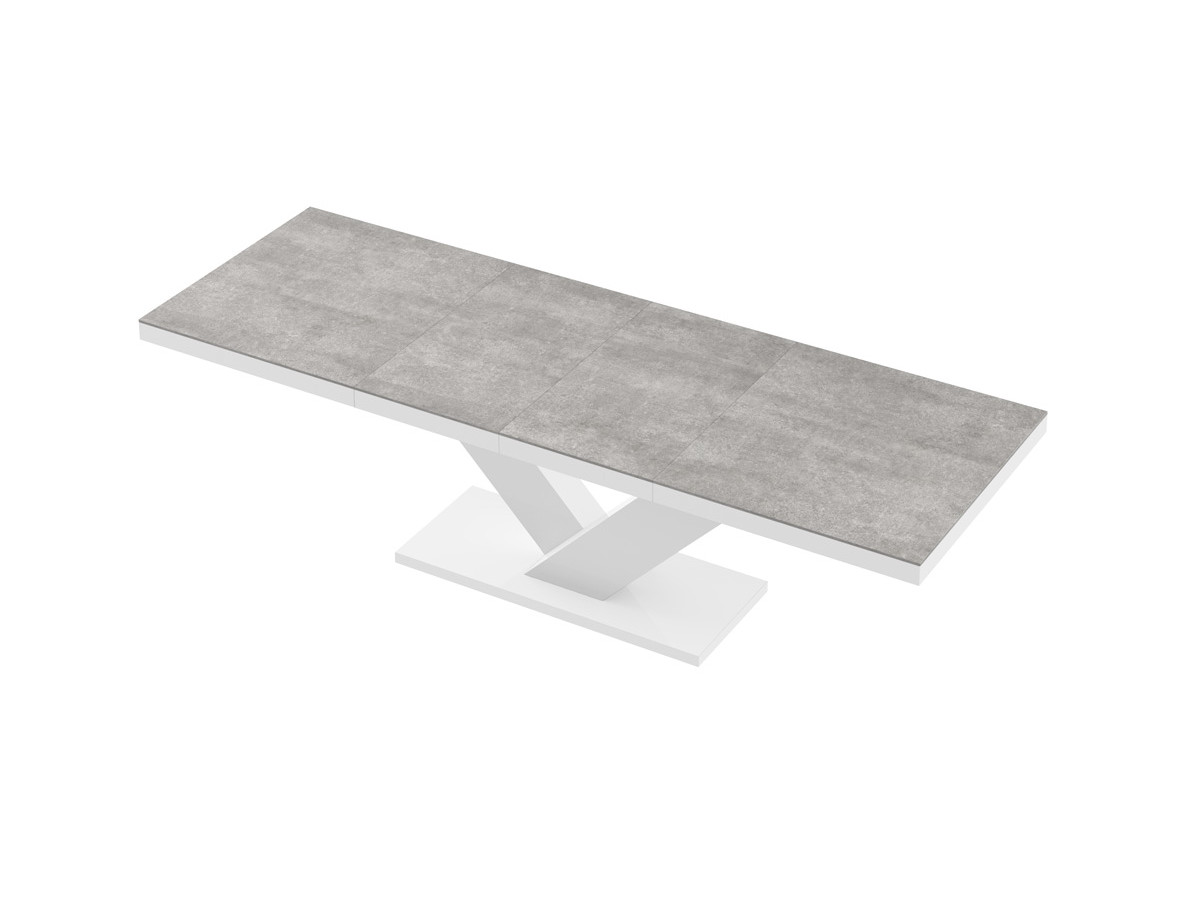 LLuxusný rozkladací jedálenský stôl VICTORIA je určený do moderného interiéru. Jedálenský stôl má základnú dĺžku 160 cm, šírku 89 cm a výšku je 75 cm. Vrchná doska jedálenského stola je vyrobená z kvalitnej MDF a technológie PRINT lakovania v imitaciach kameňa. Tento luxusný jedálenský stôl ponúka možnosť rozloženia, čím sa zväčší jeho dĺžka na 208 cm alebo až na 256 cm.
