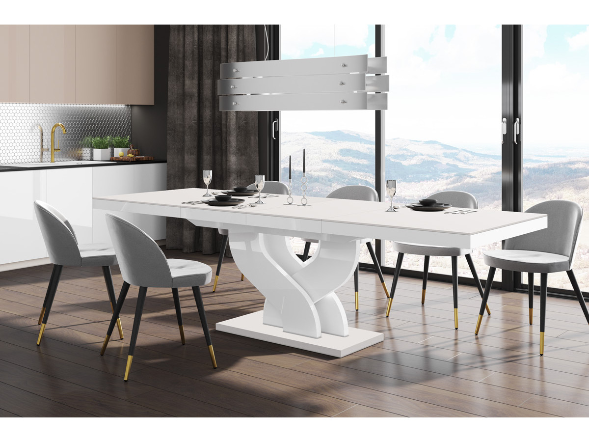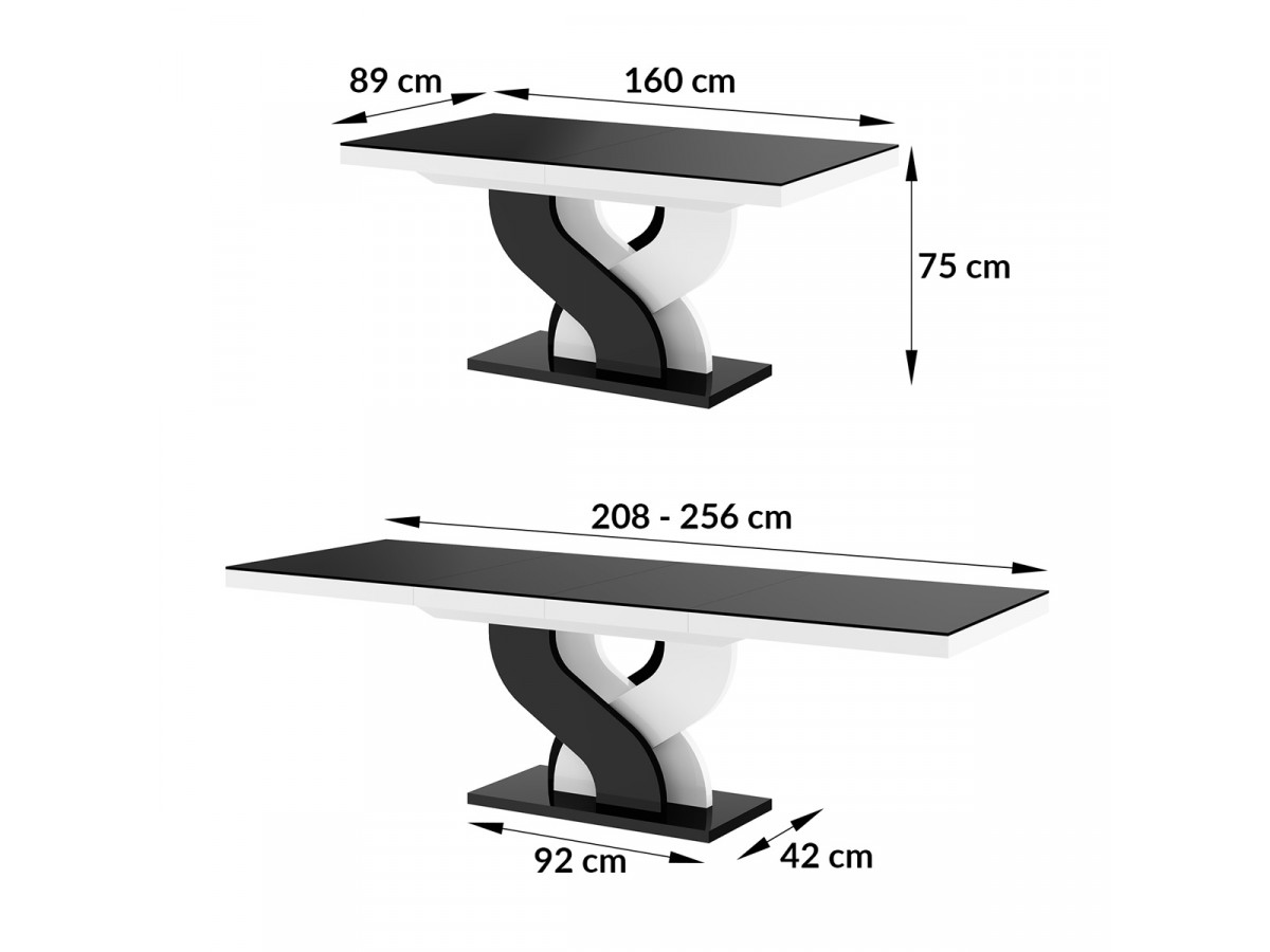 Jedálenský stôl BELLA je určený do moderného interiéru. Jedálenský stôl má dĺžku 160 cm a šírku 89 cm. Jeho výška je 75 cm. Tento luxusný jedálenský stôl ponúka možnosť rozloženia, čím sa zväčší jeho dĺžka na 208 cm alebo 256 cm - záleží, koľko prvkov pridáte k vrchnej doske stola.