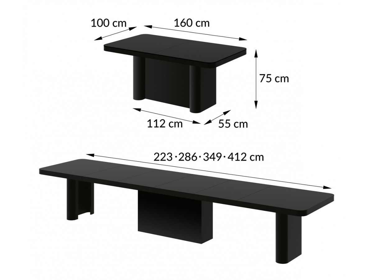 Stôl PORTOFINO z novej dizajnovej kolekcie AMORE COLORE zaujme svojím jedinečným dizajnovým vzhľadom a veľkosťou, v ktorom sa spája nadčasová modernosť a luxus. Doska stola v drevo dekore v kombinácii s mohutnou nosnou nohou vo vysokom lesku tvoria dizajnérsky kúsok ktorý sa stane dominantou miestnosti. Stôl je rozkladací zo 160cm až na 412cm dĺžka x 100cm šírka x 75cm výška.