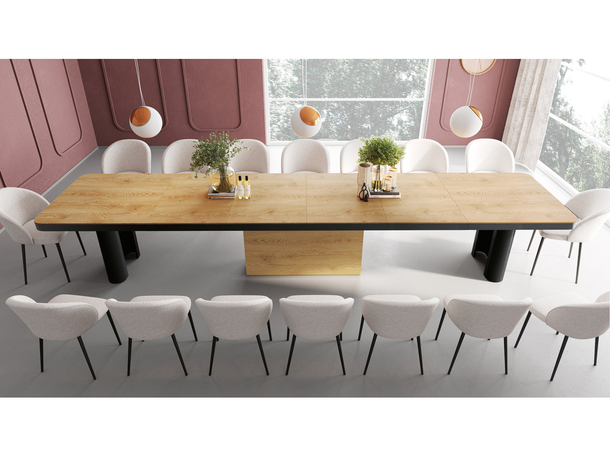 Vďaka svojej pôsobivej veľkosti je stôl Portofino ideálny do veľkých jedální a konferenčných priestorov. Jeho pevná konštrukcia zaručuje stabilitu pri plnom rozložení a odolnosť po mnoho rokov. Zaoblené hrany odrážajú súčasné trendy v interiérovom dizajne a zároveň zaisťujú bezpečnosť a pohodlie, či už ide o rodinnú večeru alebo dôležité obchodné stretnutie.