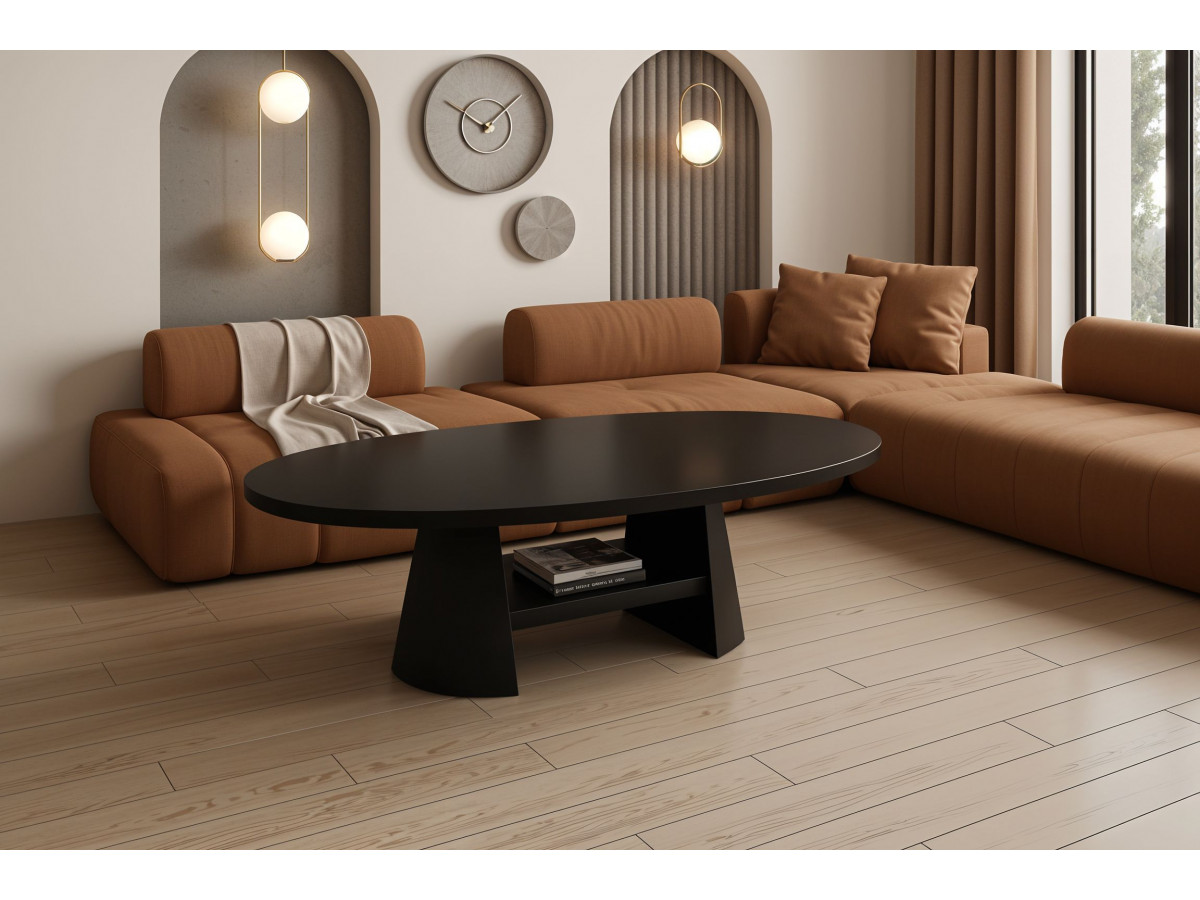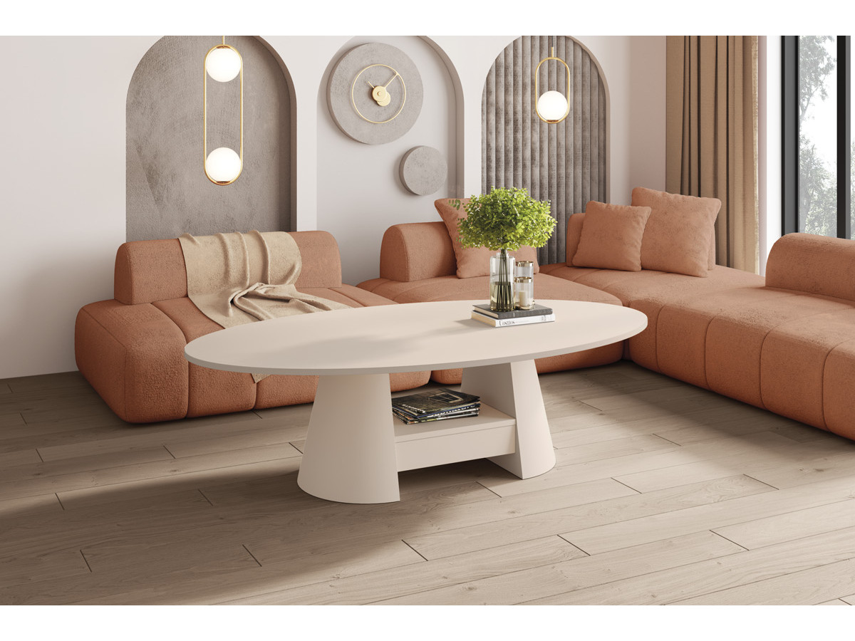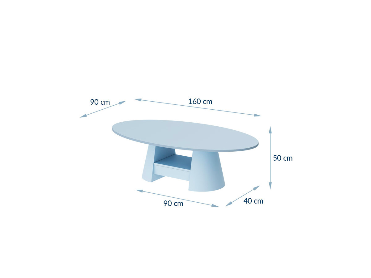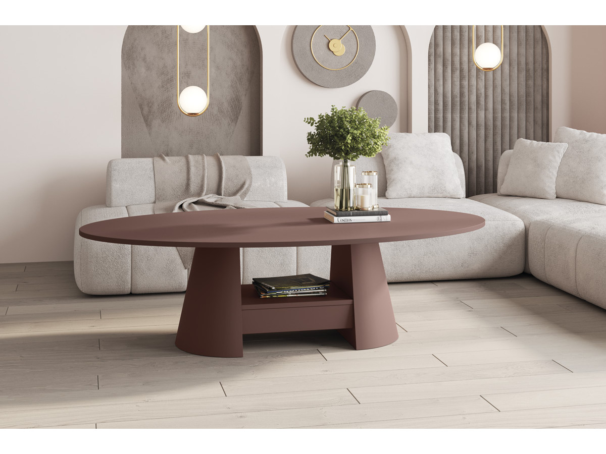 Konferenčný stolík CALABRO z kolekcie Amore Colore zaujme svojím jedinečným dizajnovým vzhľadom, v ktorom sa spája nadčasová modernosť a luxus. Jeho oválny vrch pokrytý zamatovo matným povrchom vyniká hĺbkou farieb. Rovnako interesantným prvkom tohto modelu je rozdelená zaoblená noha s policou a šuflíkom, ktorá je dizajnérskym kúskom a dodáva stolu jedinečný charakter. Rozmery stolíka 160x90x47cm