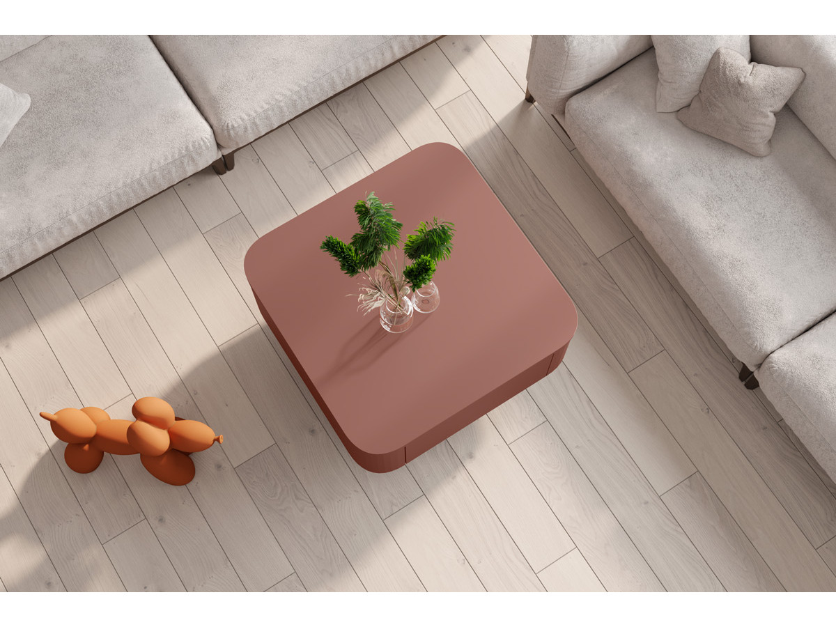 Konferenčný stolík Grado z kolekcie Amore Colore je zaujímavý kus nábytku, ktorý priťahuje pozornosť svojím jedinečným dizajnom. Jeho vrchná doska má tvar zaobleného štvorca, čo mu dodáva jemný a harmonický pocit. Konferenčný stolík je vyrobený z elegantnej MDF so zamatovou a hlboko matnou povrchovou úpravou a vyžaruje moderný minimalizmus a jemnú eleganciu.