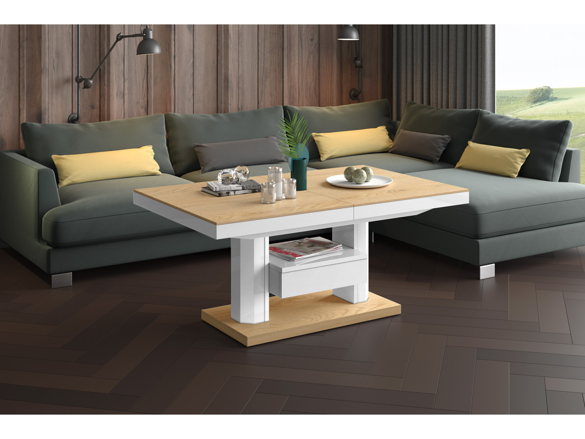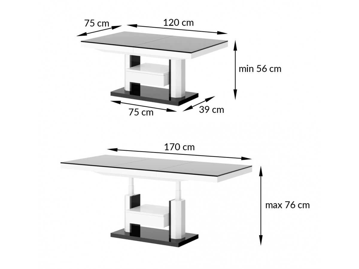 Moderný rozkládcí konferenčný stolík QUADRO LUX je veľmi praktický a zároveň pôsobí luxusne.Konferenčný stolík má dĺžku 120 cm a šírku 75 cm zároveň ponúka možnosť rozloženia,čím sa zväčšia jeho rozmery na 170 x 75 cm. Jeho výška 56 cm sa dá nastavovať až do 75 cm.