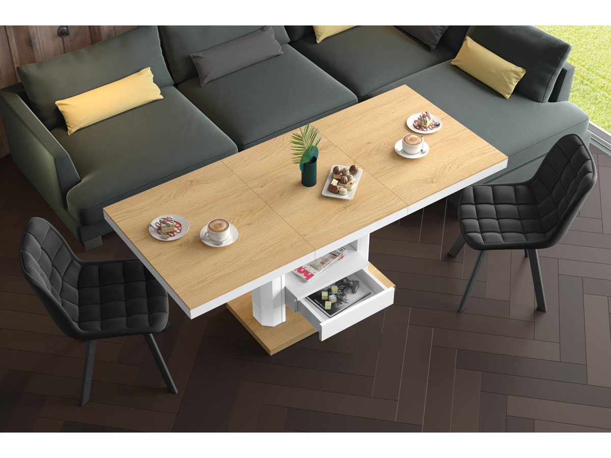 Nábytok 2 v 1 je praktický do malých plôch kde nemáme dostatok miesta pre stolík v plnej veľkosti, ale bude to dokonalé nielen tam. Univerzálny stôl zjednoduší život členov domácnosti v rôznych situáciách - chceme pohodlne jesť večeru, pracovať na notebooku alebo riešiť úlohy s deťmi.